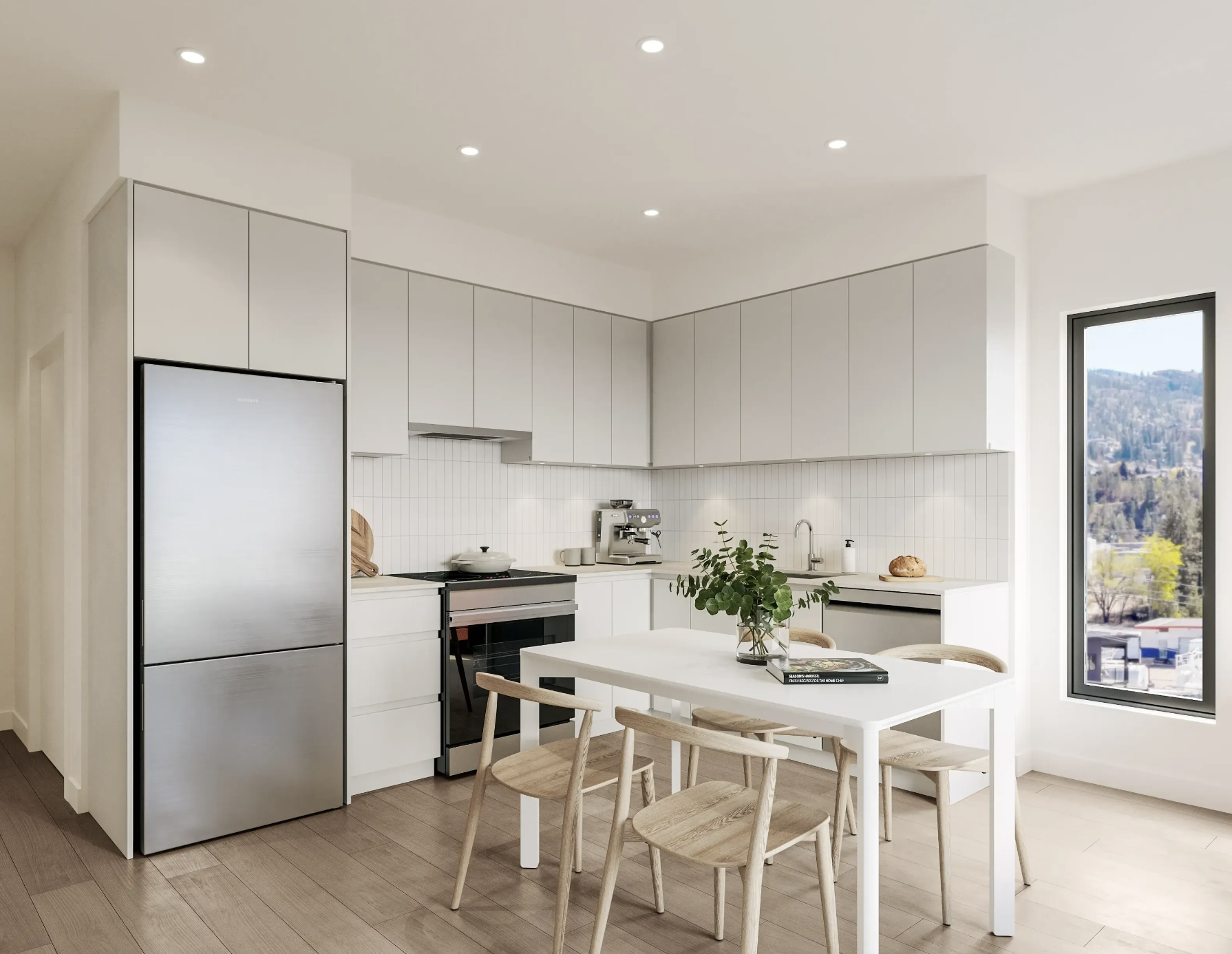 Nikola, the inaugural residential building in the Innovation District, offers the first opportunity to make this master-planned community your home. Spanning six stories, Nikola features 127 homes in studio to three-bedroom configurations. Set creekside, its architectural design reflects Scandinavian influences, introducing a new standard of excellence to Penticton.